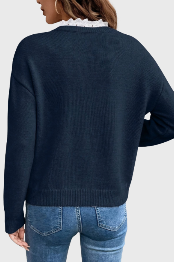 El jersey Iara combina la comodidad del día a día con una elegancia sutil. Con un escote en V favorecedor rematado con delicado encaje, aporta un detalle femenino que eleva cualquier look casual. Perfecto para combinar con vaqueros o llevar bajo un blazer, Iara será tu aliado tanto en fines de semana relajados como en salidas más pulidas.